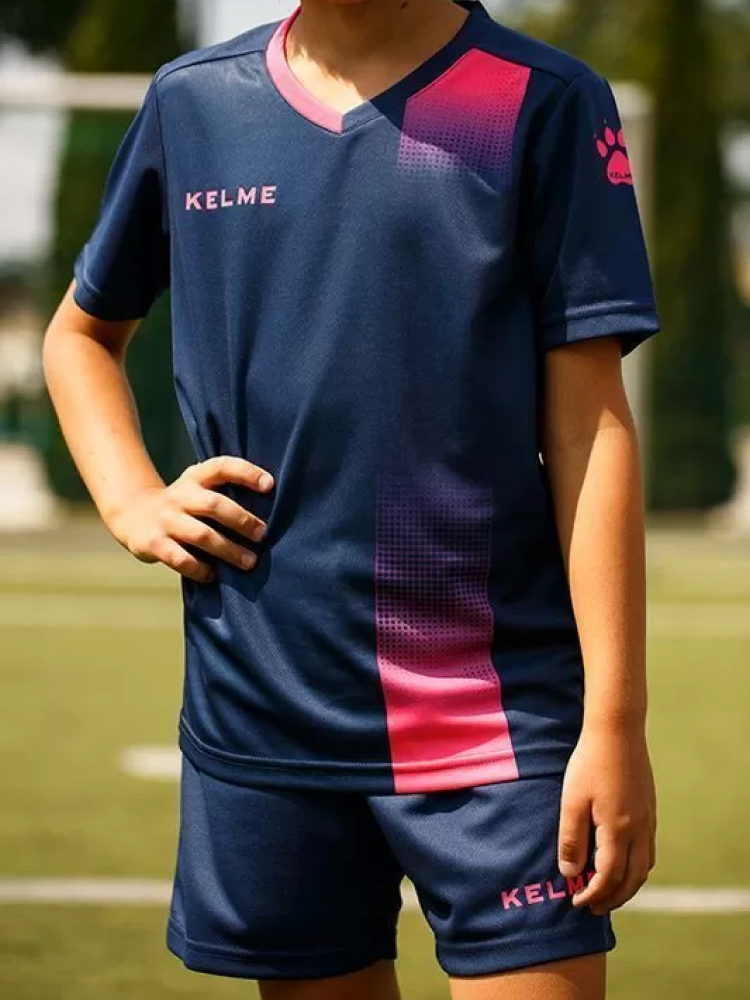 KELME Short Sleeve Football Kid (Dark Blue/Pink)